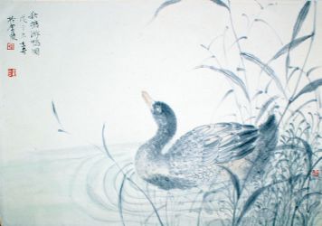 秋塘游鸭