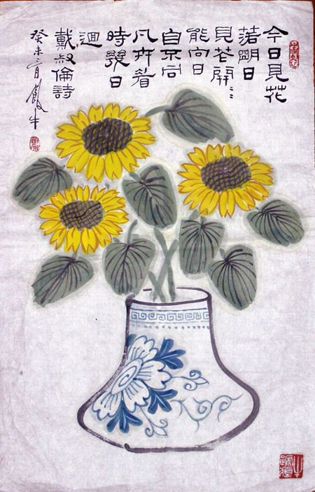名称:青花瓶向日葵 |